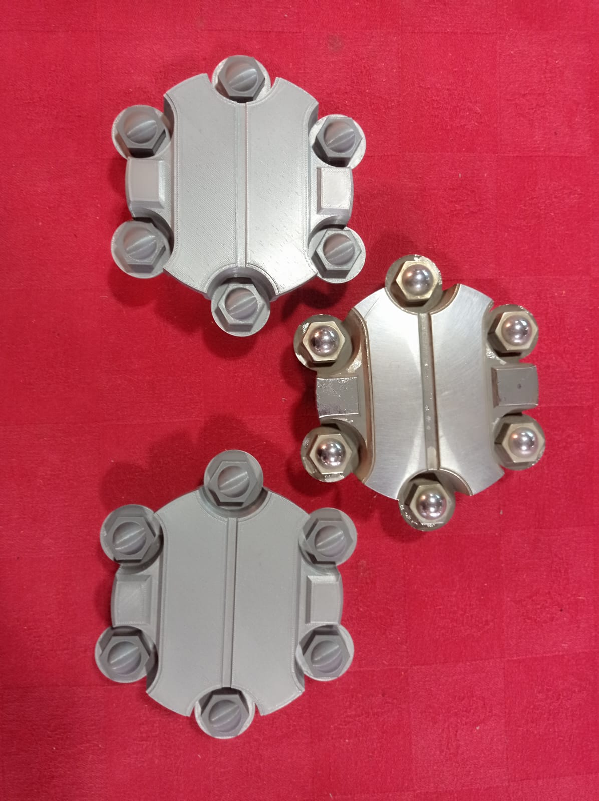 Impresión de moldes para silicona con tecnología non-planar (impresión con los 3 ejes x, y, z de forma simultánea). Se usaron materiales con polvos de aluminio, Policarbonato, ASA y PLA.